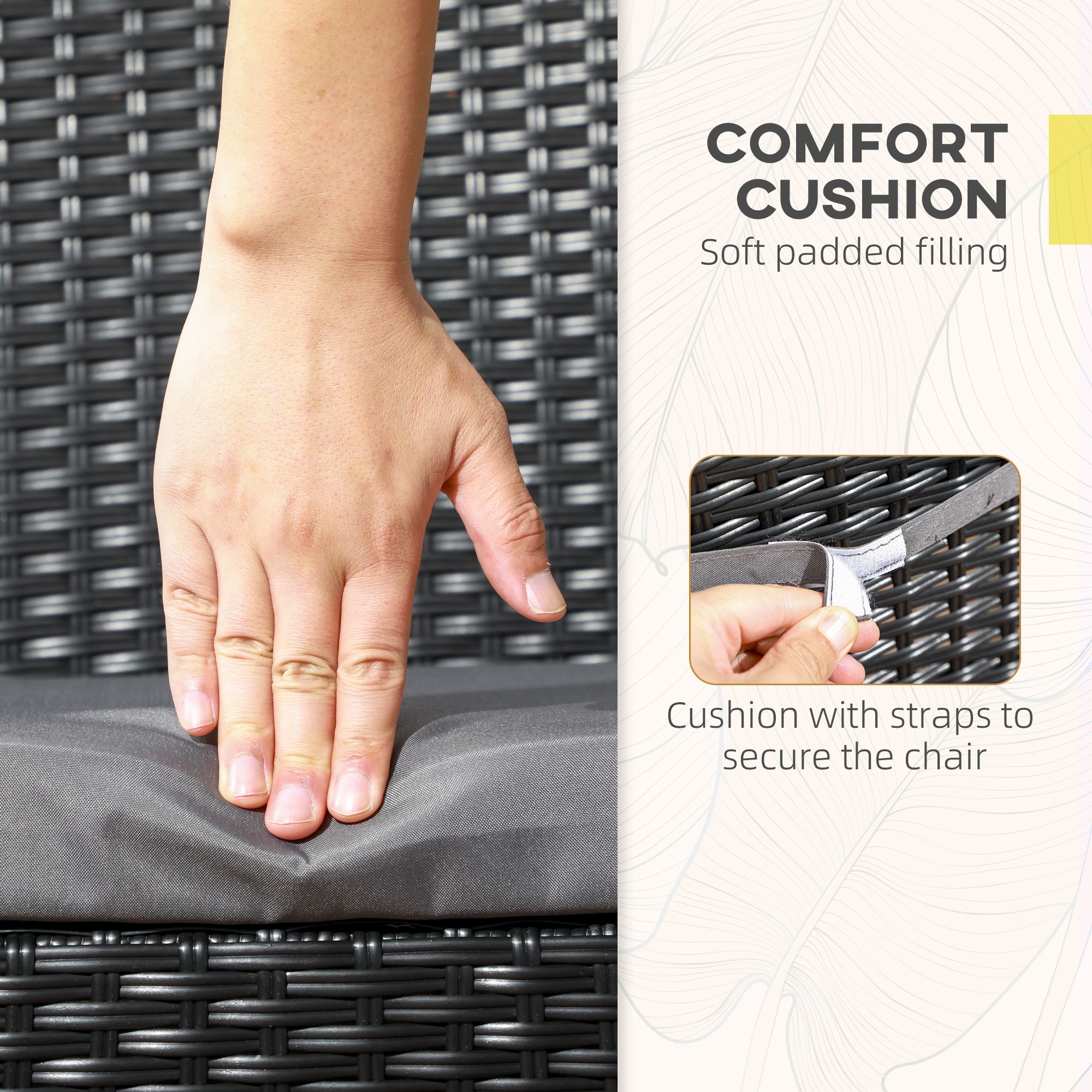 A must for your garden: these Jones chairs. Powder coated metal frames for a strong core, wrapped in rattan for style. High backs for support. Complete with a cushion for comfort.