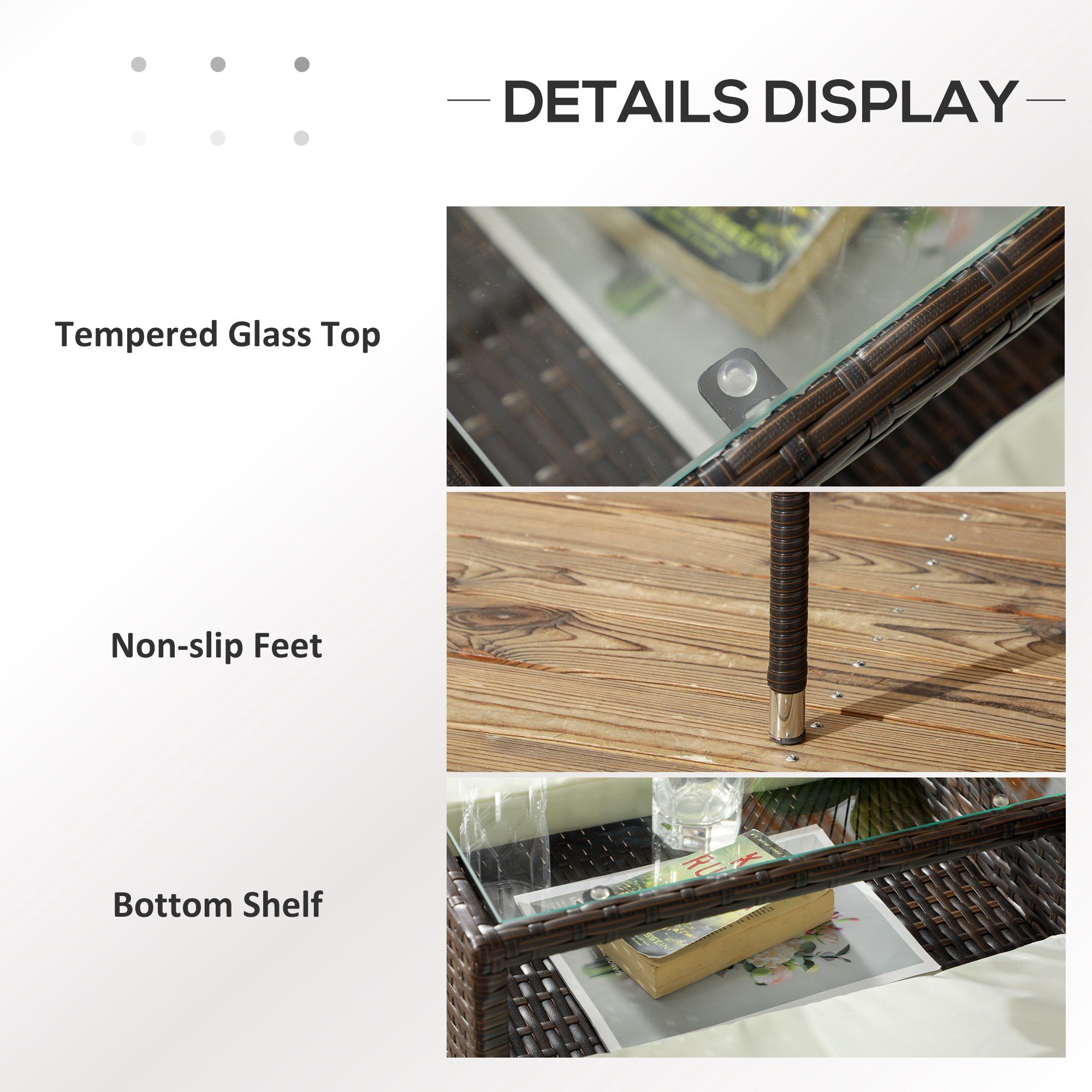 Material: PE Rattan, Steel, Glass, Polyester