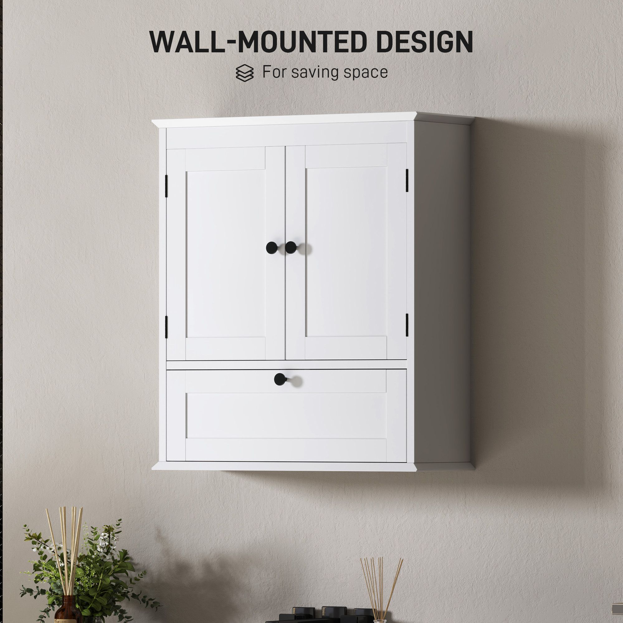 JONRIL Bathroom Wall Cabinet Wooden Adjustable Shelf Storage Unit - White