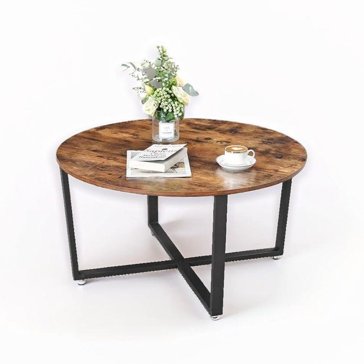 JOVENTRA Coffee Table Large Round Table for Living Room - Rustic Brown