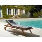 This wooden sun lounger is a perfect combination of durability and style. Made of solid, hard wearing acacia wood, it will last for years given the accurate care. It blends nicely with any exterior design style, from a plant decorated backyard to a minimalistic, luxurious poolside. The adjustable backrest reclines to a fully flat position for even greater comfort. Practical features like the wheels and slide out tray make it an ideal choice for summer. The included cushion showcases a deep tufted design and an elegant head pillow. The cover is made from durable, low maintenance polyester that’s resistant to UV rays.