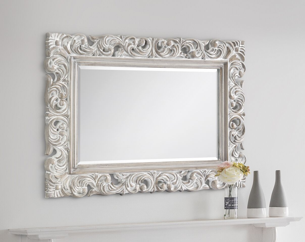 This baroque inspired mirror features elaborate, ornate detailing to add a touch of antique luxury to any home. Crafted from a PU frame, glass mirror with an MDF backboard , the Baroque distressed mirror is an elegant way to add a sense of space to any room or hallway.