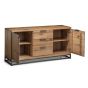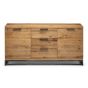 The Brooklyn Sideboard offers a vintage edge featuring industrial style metal legs. Made from solid oak, this Sideboard offers a rustic finish emphasising the stunning natural wood grain. Feautring two spacious cupboards with shelves, and three drawers, this sideboard is perfect for a wide range of modern decor. Part of the Brooklyn Dining and Occasional Collection.