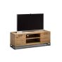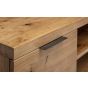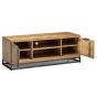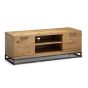 The Brooklyn TV Unit offers a vintage edge featuring industrial style metal legs. Made from solid oak, this TV Unit offers a rustic finish emphasising the stunning natural wood grain. Featuring two cupboards with shelves, and an additional shelf in the middle suitable for a console, this TV Unit is perfect for a wide range of modern decor. Part of the Brooklyn Dining and Occasional Collection.