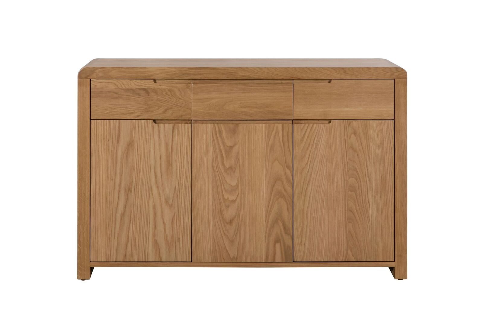 Crafted from solid oak and oak veneers, the Curve combines clean lines with a gentle curved ediging, adding a modern, retro feel to any dining area. The Curve Sideboard offers plenty of storage space with three drawers and three cupboard doors for storing away any accessories or essentials.