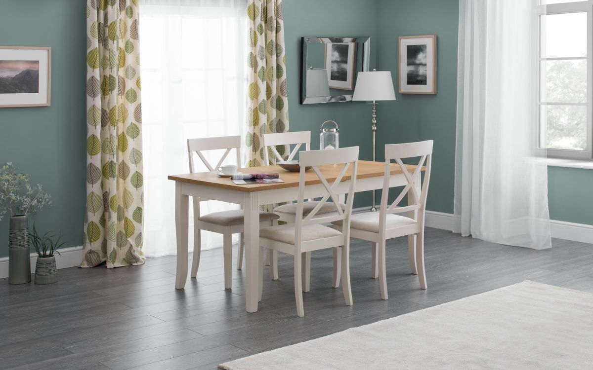 Crafted from solid rubberwood and a real oiled oak veneer 25mm top, this dining table is perfect for having dinner guests. An elegant ivory finish allows the Davenport table to match a wide range of decor, as well as brining a touch of elegance. Featuring a butterfly extension system that is easy to use and stores within the table when not in use, creating more space for your guests when needed. A wide range of coordinating items are available in the Davenport collection.