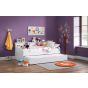 Grace is a stunning pure white daybed which offers great functionality for both children's rooms and elsewhere. The sleek curved design incorporates copious handy shelving, and when combined with the Ellie Underbed provides enormous amounts of underbed storage or the option of an extra sleeping surface.