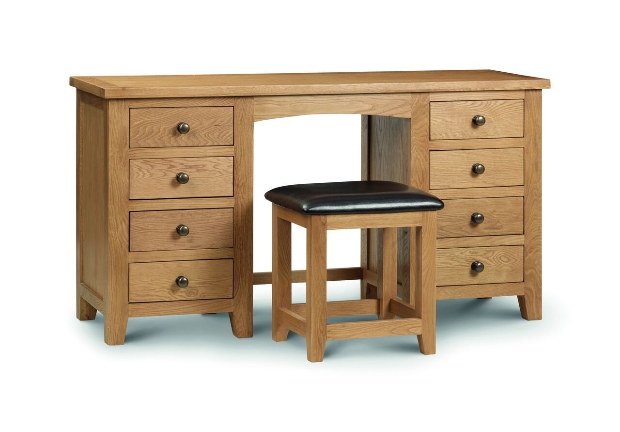 Marlborough is a bedroom range with a classic and timeless design, beautifully constructed using the finest American White Oak and Oak Veneers and which complements both traditional and contemporary decor beautifully.The Marlborough Oak Dressing Stool has a Comfortable Cushioned Seatpad, Upholstered in Dark Brown Faux Leather and accompanies the Marlborough single and twin pedestal dressing tables (sold separately).