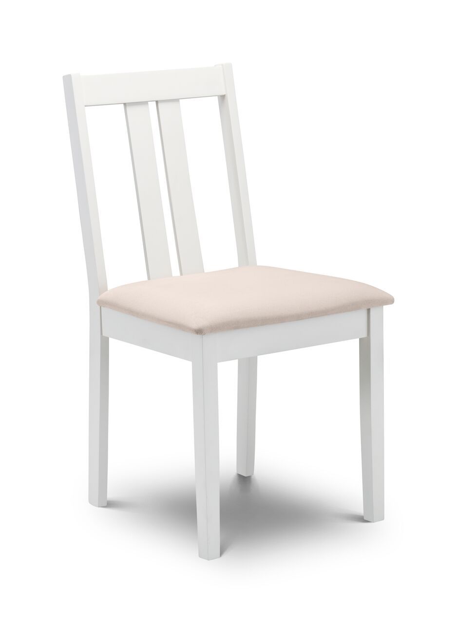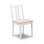 A stylish hardwood dining chair in a natural lacquered finish with a padded faux suede seat.