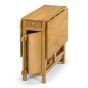 - The set features a handy integrated storage drawer and is finished in a Low Sheen Light Oak Colour Lacquered Finish.