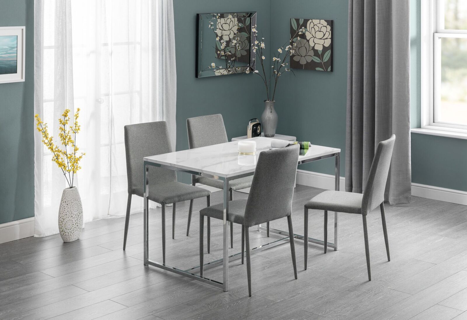 The Scala Dining Table has a sleek, elegant design with a beautiful chic marble effect table top on a well-crafted stainless steel frame. It has a timeless Italian design that fits well with a wide range of decorative styles. Part of the Scala Occasional furniture range