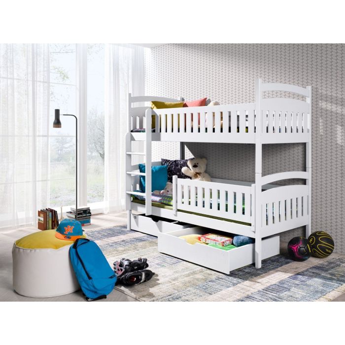 The Wooden Juliet Bunk Bed with two storage drawers is a space-saving, functional kids' bed that is easy to assemble. Its charming appearance blends well with other furniture in the children's room, while its sturdy construction provides the safety.