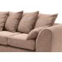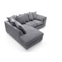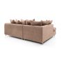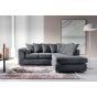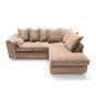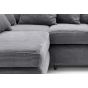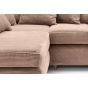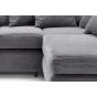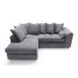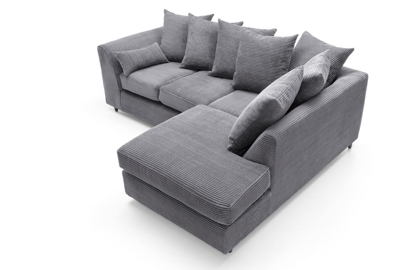 A grey jumbo cord corner sofa? Perhaps in brown? We have them both! Enjoy a lavish chaise corner sofa upholstered in the most pristine soft structured cord chenille fabric there is. Soft to the touch. Opulent and inviting in its visual appeal. Angular arms, a pared back and generously filled scatter cushions provide a very contemporary style statement. A sofa destined to become your old faithful. Choose from an earthy black and grey colour pairing or a warmer brown and beige pairing.