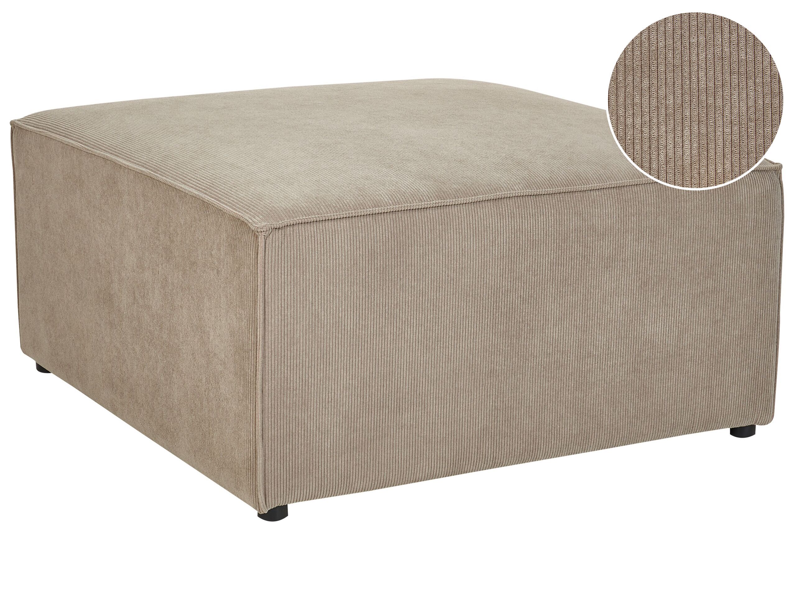 Make your living room stylish and well-arranged with this modern ottoman. The corduroy upholstery is soft to the touch and features a striking ribbed texture, which gives it an elegant look, additionally the piece is supported by the legs made of synthetic material. This multifunctional ottoman will look great when matched with other pieces from the collection and can be used as an additional seat, footstool or table. Details: Color: Beige. Main material: Corduroy. Additional material: Synthetic Material, Eucalyptus Wood. Material Composition: 100% Polyester Weight: 14 Assembly: Does Not Require Assembly Weight Capacity: 136 Legs Height: 3
