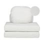 Create versatile comfort with our 1-seater convertible sleeping sofa. Crafted for adaptability, it features 2 seating cushions and 2 scatter cushions, allowing you to arrange them as desired. Transform it effortlessly into an armchair, chaise lounge, or single bed to suit your needs. With removable covers on all cushions, maintenance is a breeze. Enjoy multifunctional living with this stylish solution. Details: Color: White. Main material: Corduroy. Material Composition: 100% Polyester Weight: 14 Capacity: 1 Person Assembly: Partial Assembly Required Cushions Dimensions: 50x60 Padding Thickness: 32 Seat Height: 32 Sleeping Surface: 81x182