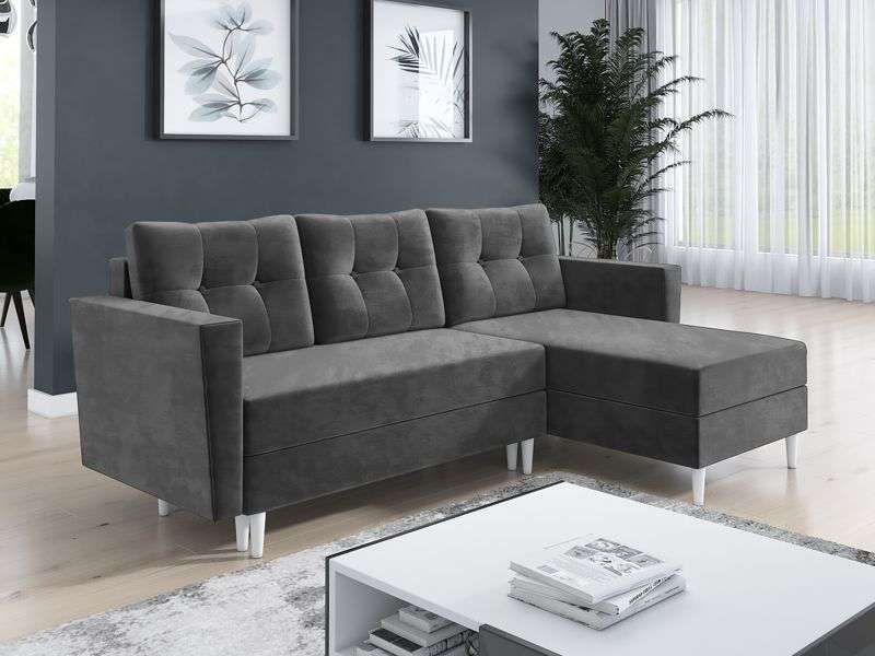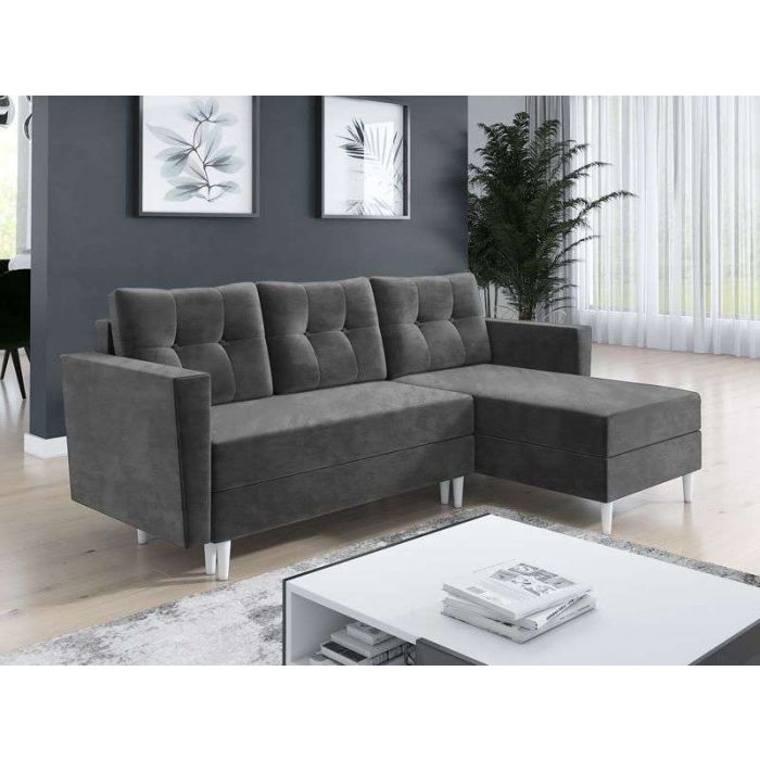 JUNMERE Fabric 3 Seater L Shaped Corner Sofabed - Dark Grey, Reversible Facing