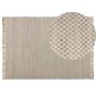 The robust workmanship of this low-pile area rug makes it ideal for high-traffic areas. The long fringes and the beige colour spread a particularly homely feeling and boho vibes. This reversible rug will be just right for a bedroom or living room, where cosiness and a feel-good atmosphere are important. Details: Color: Beige. Main material: Cotton. Weight: 4 Assembly: Does Not Require Assembly