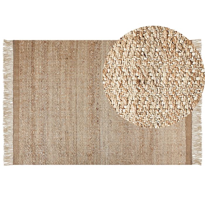 Make your interior feel cosy and add to your flooring a stylish rug that will spruce up the look of the entire interior. The use of natural jute gives off a boho feel, which is highlighted with tassels on both ends. The product is handmade with utmost precision, making each piece unique. Details: Color: Beige. Main material: Jute. Material Composition: 100% Jute Weight: 10 Assembly: Does Not Require Assembly