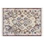 Introduce a cosy and warm accent to your living room or bedroom with this accessory. It was handwoven from the blend of jute and cotton, therefore durable and superbly easy to maintain. The carpet features a geometric pattern and tassels in a combination of neutral colours, what makes it the perfect addition to any Boho or traditional interiors. Details: Color: Multicolour, Beige, Red, Blue. Main material: Jute. Additional material: Cotton. Material Composition: 80% Jute, 20% Cotton Weight: 6 Assembly: Does Not Require Assembly