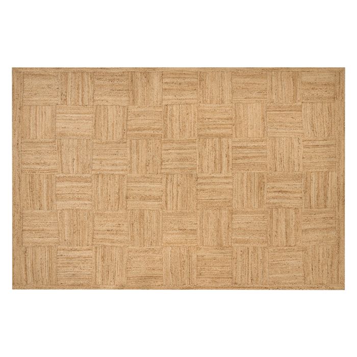 Indulge in the natural charm of this handmade jute rug featuring a timeless checked look and solid colour. Each piece is meticulously crafted, offering a unique touch to elevate your space effortlessly. Its large pattern infuses a sense of openness, making your room feel larger and more inviting. Details: Color: Beige. Main material: Jute. Material Composition: 100% Jute Weight: 11