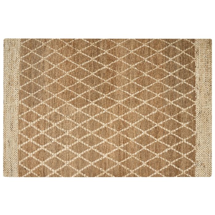 Bring a natural vibe to your home with this rectangular area rug. Handcrafted out of jute, the piece is very durable, while remaining low maintenance and pleasant to touch, making it a perfect choice for traffic-heavy areas of your home. The rug features a geometric pattern and classic, beige colour, which makes it fit into a variety of boho or rustic interior decor styles. Details: Color: Beige. Main material: Jute. Weight: 11 Assembly: Does Not Require Assembly