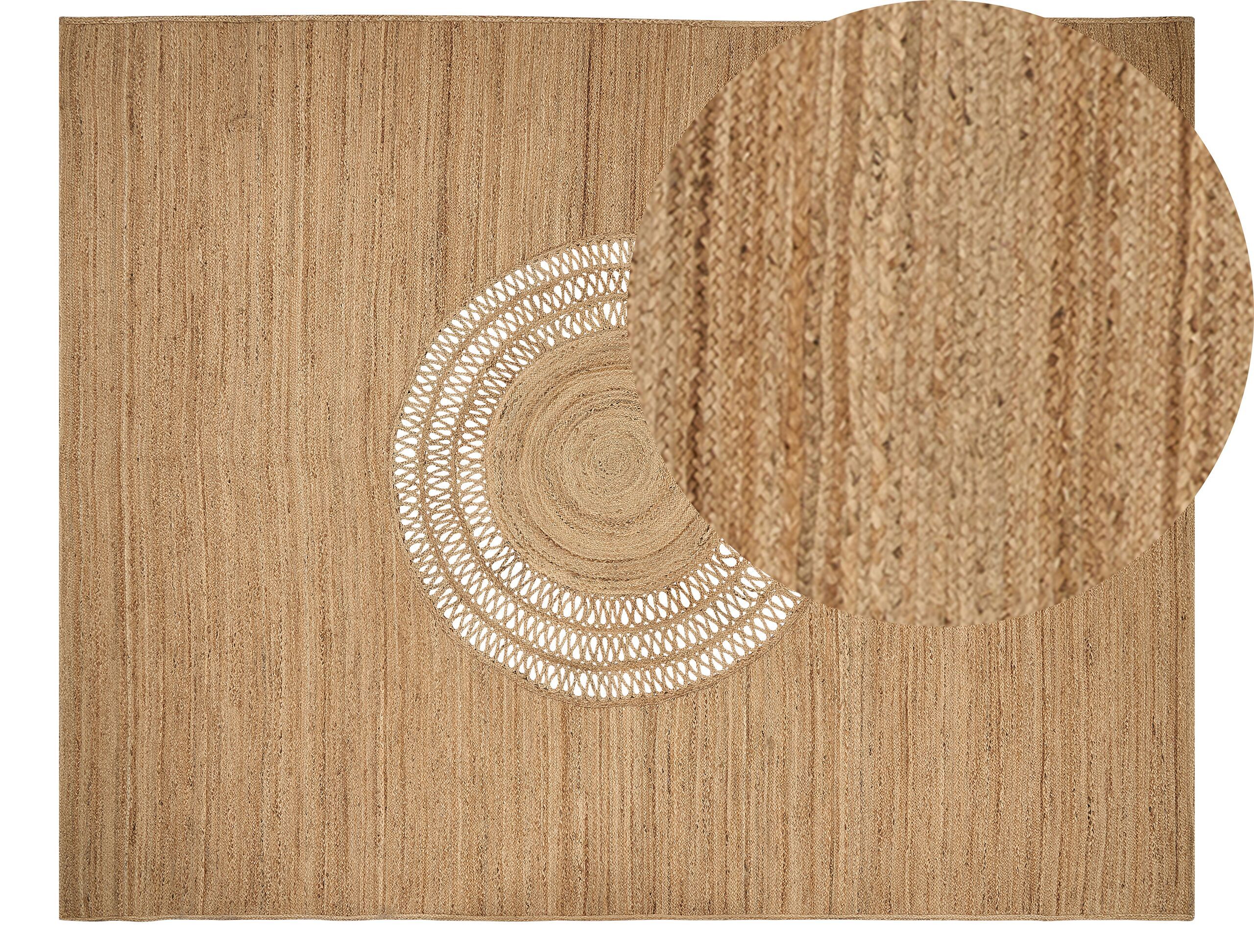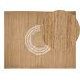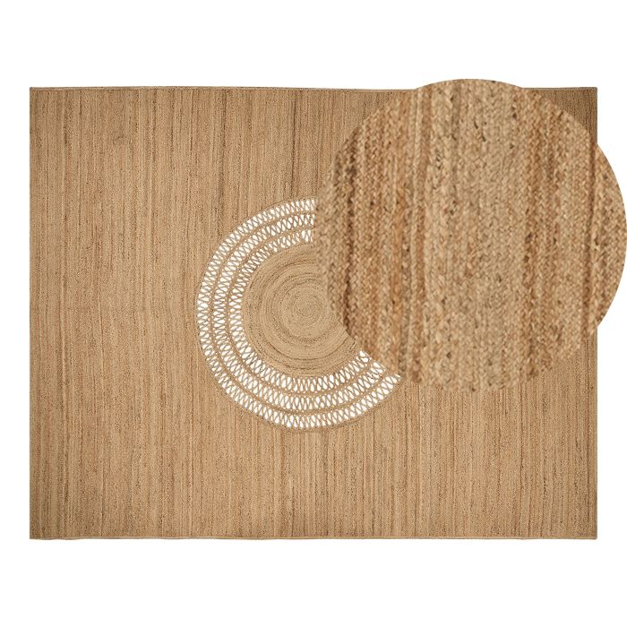 Handcrafted with intricate details, this jute rug is a subtle yet decorative addition to any floors. Featuring a round, cut-out pattern in the middle it certainly catches attention. Use of natural jute make it a perfect fit for Boho and rustic styled rooms. Details: Color: Beige. Main material: Jute. Material Composition: 100% Jute Weight: 21