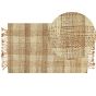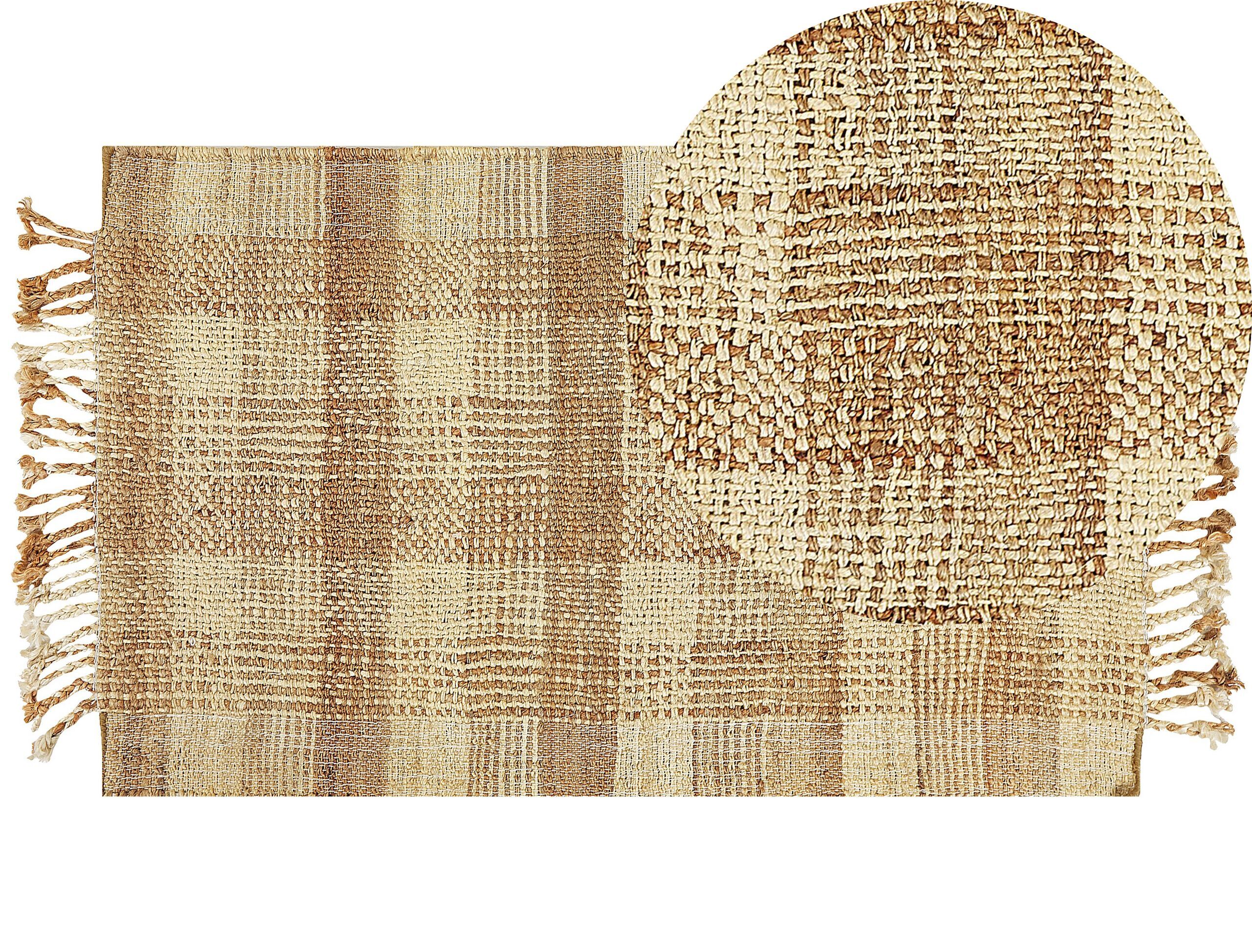 Enhance a natural style in your interior and complement its décor with this jute rug. Thanks to the handmade design and decorative tassels, it is a unique addition to your living room or bedroom. The rug is durable and requires no special care to last for a long time. Details: Color: Beige, Natural. Main material: Jute. Additional material: Cotton. Material Composition: 95% Jute, 5% Cotton Weight: 3 Assembly: Does Not Require Assembly