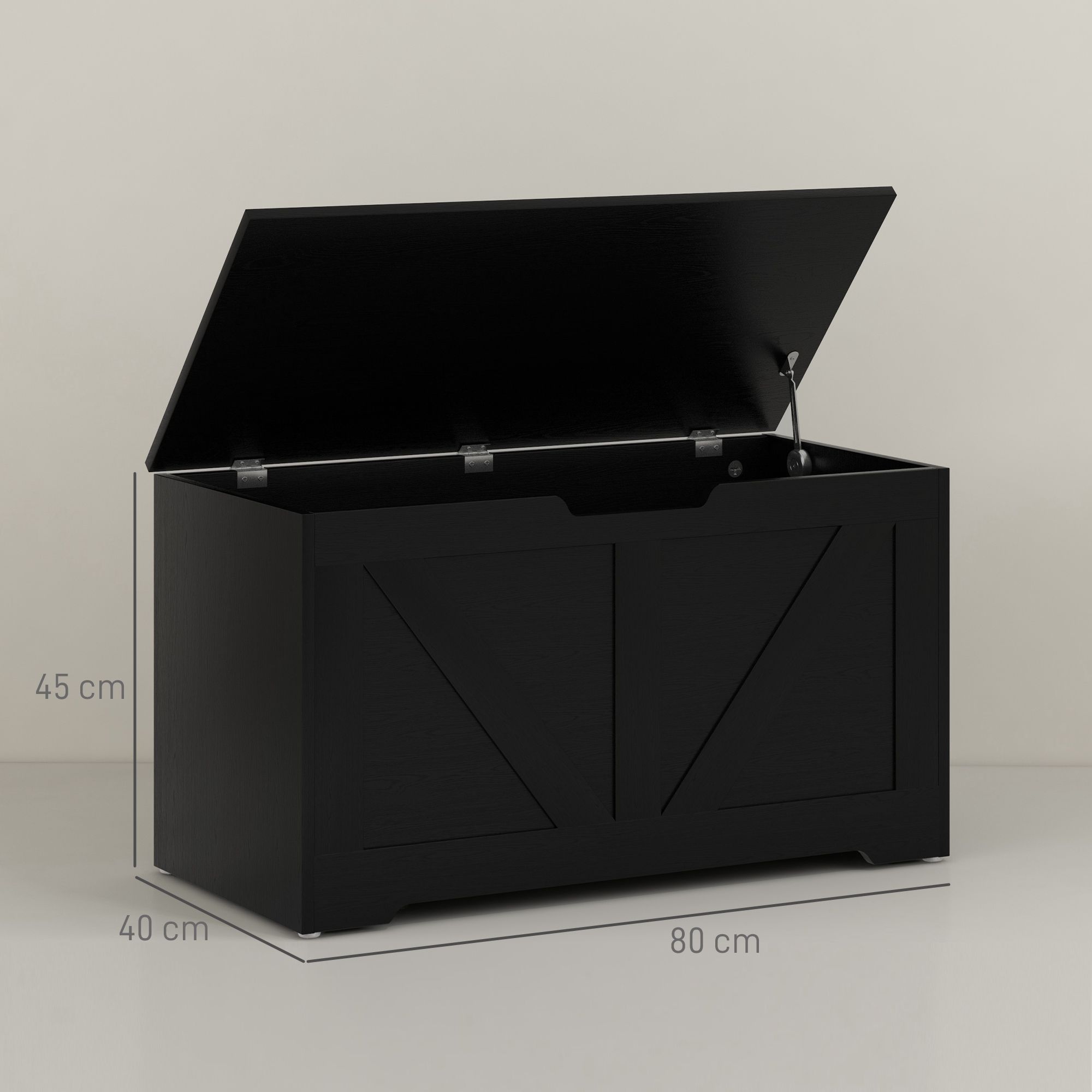 Clean, simple storage - and also a place to sit with this HOMCOM storage trunk. The 100L capacity is spacious to hold plenty, including blankets, cushions and other soft furnishings. A particle board structure makes this storage ottoman stable, with a supportive flat lad to allow you to sit on there when needed. Complete with a safety hinge to you don't catch and hurt your finger accidentally. 100L capacity: Storage box offers plenty of inner storage. Suitable as a soft furnishing, decoration, memories storage box. Keeps your space tidy and clean. Safety hinge: Easy to open and close, without the worry of catching and hurting your finger. 'U' cutout on the lid to lift up easily. Large flat seat top: Sit on this storage chest when you need - use as a shoe changing bench or bed end bench. Place a cushion to sit comfortably. Stable: Made from particle board, storage bench is a tough shell for inner contents. Smooth and protective melamine coating.