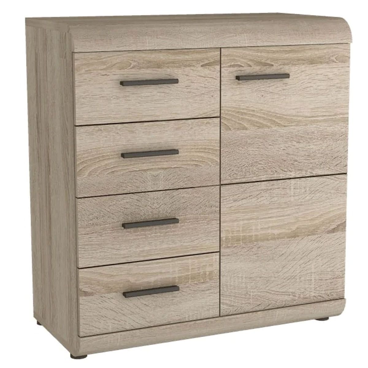 Transform your space with the Kaleido Cabinet in Oak Sonoma—an elegant fusion of style and practicality. Crafted from durable 16mm laminated board, this cabinet boasts a sleek design that seamlessly fits into modern interiors. With one hinged door revealing a convenient shelf and four drawers for organized storage, it's a versatile addition to any room. The Oak Sonoma finish adds warmth and character, making this cabinet a stylish solution to elevate your home. Assembly is easy, ensuring a quick and seamless integration into your decor.
