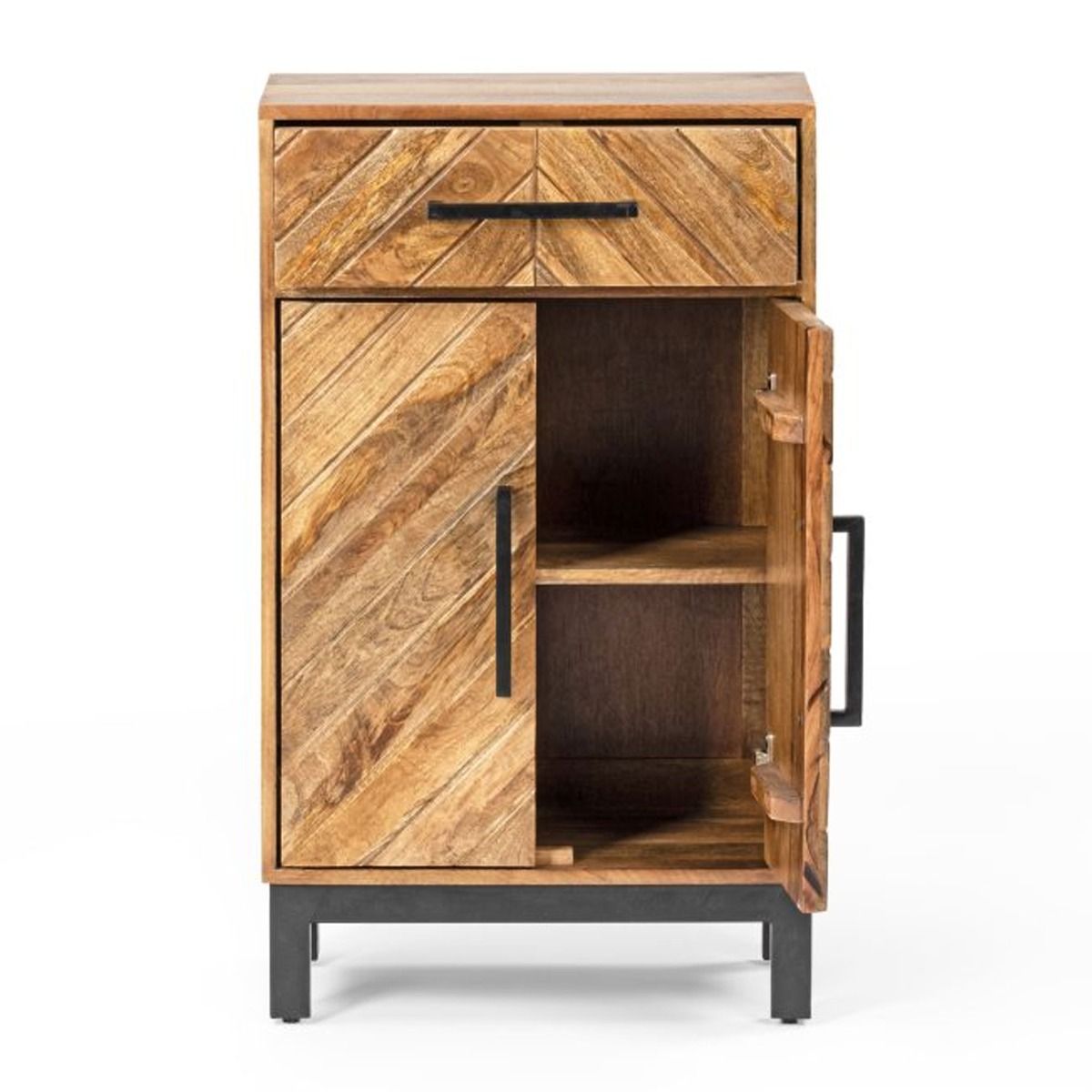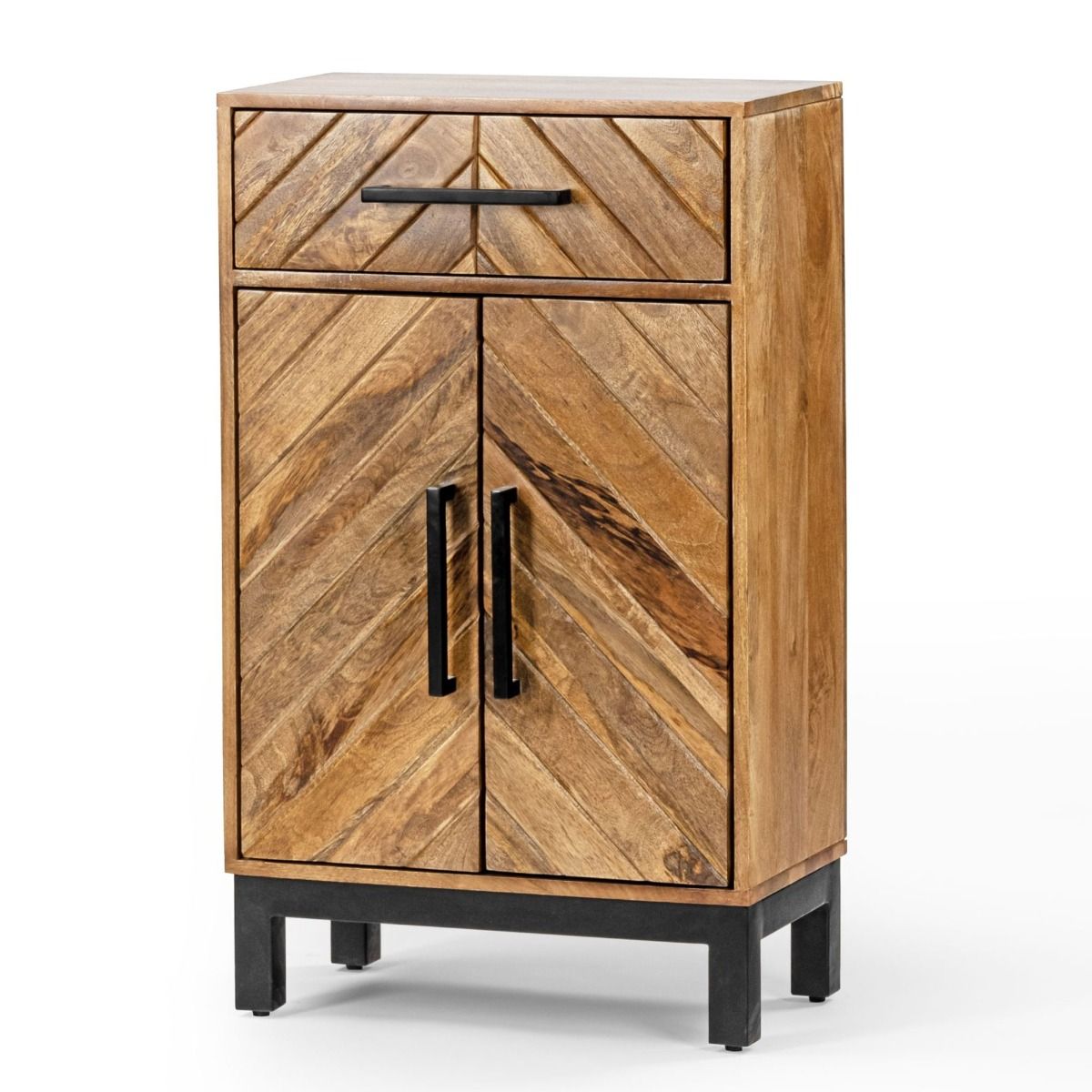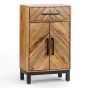 Kamala Metal Legs Frame Compact 2 Door Tall Sideboard with Drawer - Mango Wood