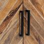 Introducing Kamala Range Mango wood side table, featuring a rich brown finish and impeccable craftsmanship. With one drawer and two doors, this side table offers convenient storage for various items while adding a touch of elegance to your space. The sturdy iron legs base ensures stability, while the black metal handles provide a sleek contrast.