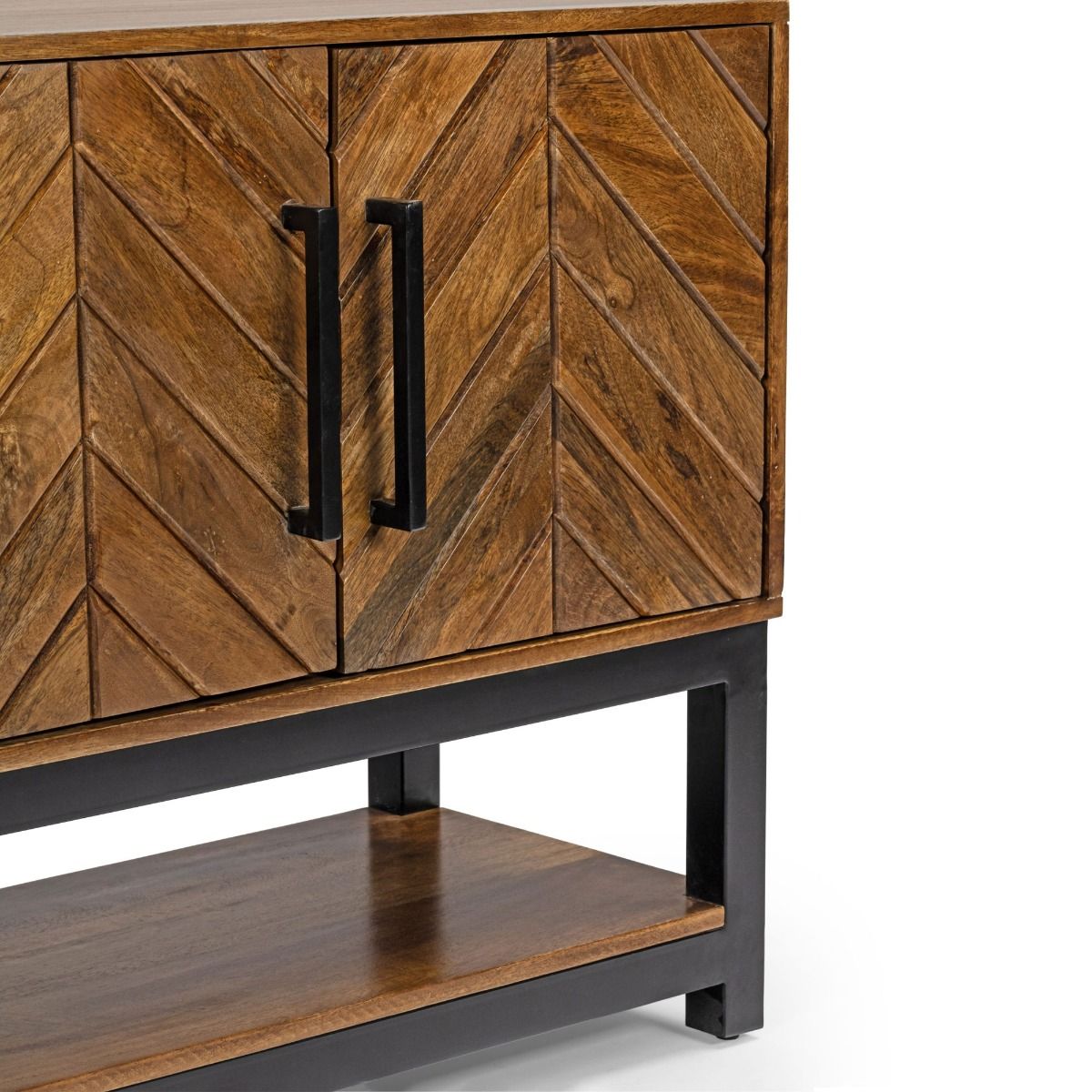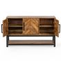 Kamala Metal Legs Frame Low Height Console Table with 4 Doors - Mango Wood