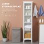KANSAS Tall Bathroom Storage Unit Slim Cabinet Adjustable Shelves Double Door - White