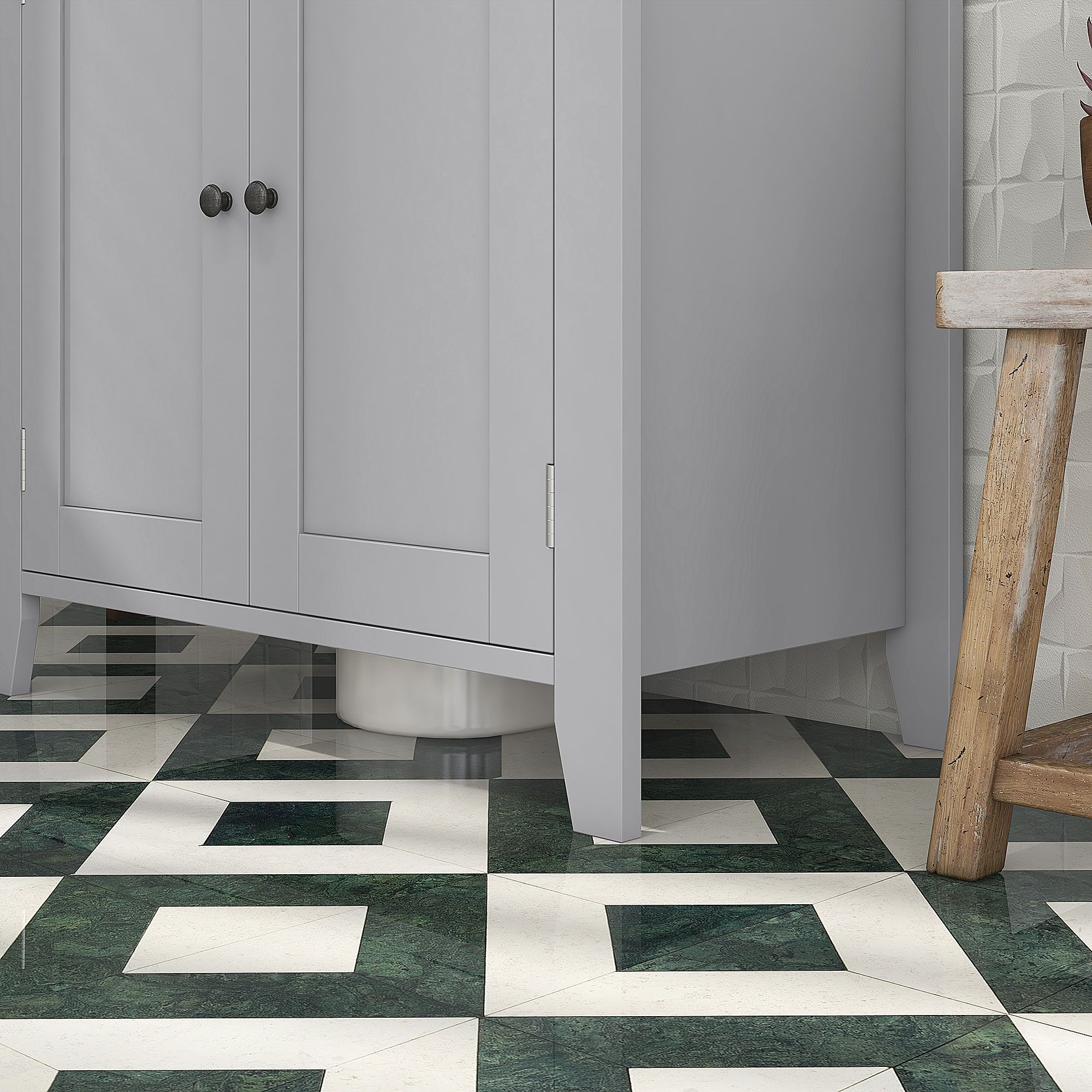 When your bathroom space is running low, but you still need extra, go for this under basin cabinet from KANSAS. It's timelessly elegant, thanks to the classy boxy shape and clean grey and wood-effect colour scheme. Made made from MDF, the unit is tough and robust, with a for 'U' cut out on the top so it slots in around the sink pipes. It comes with an adjustable inner shelf and is completed with a handle on each door to open and close easily.