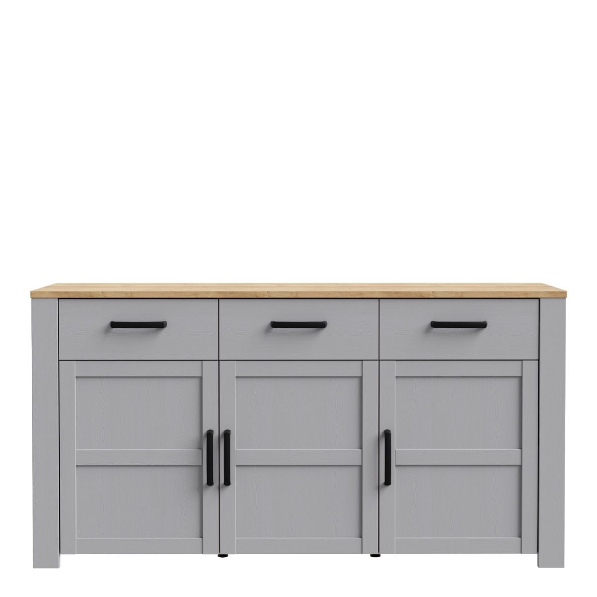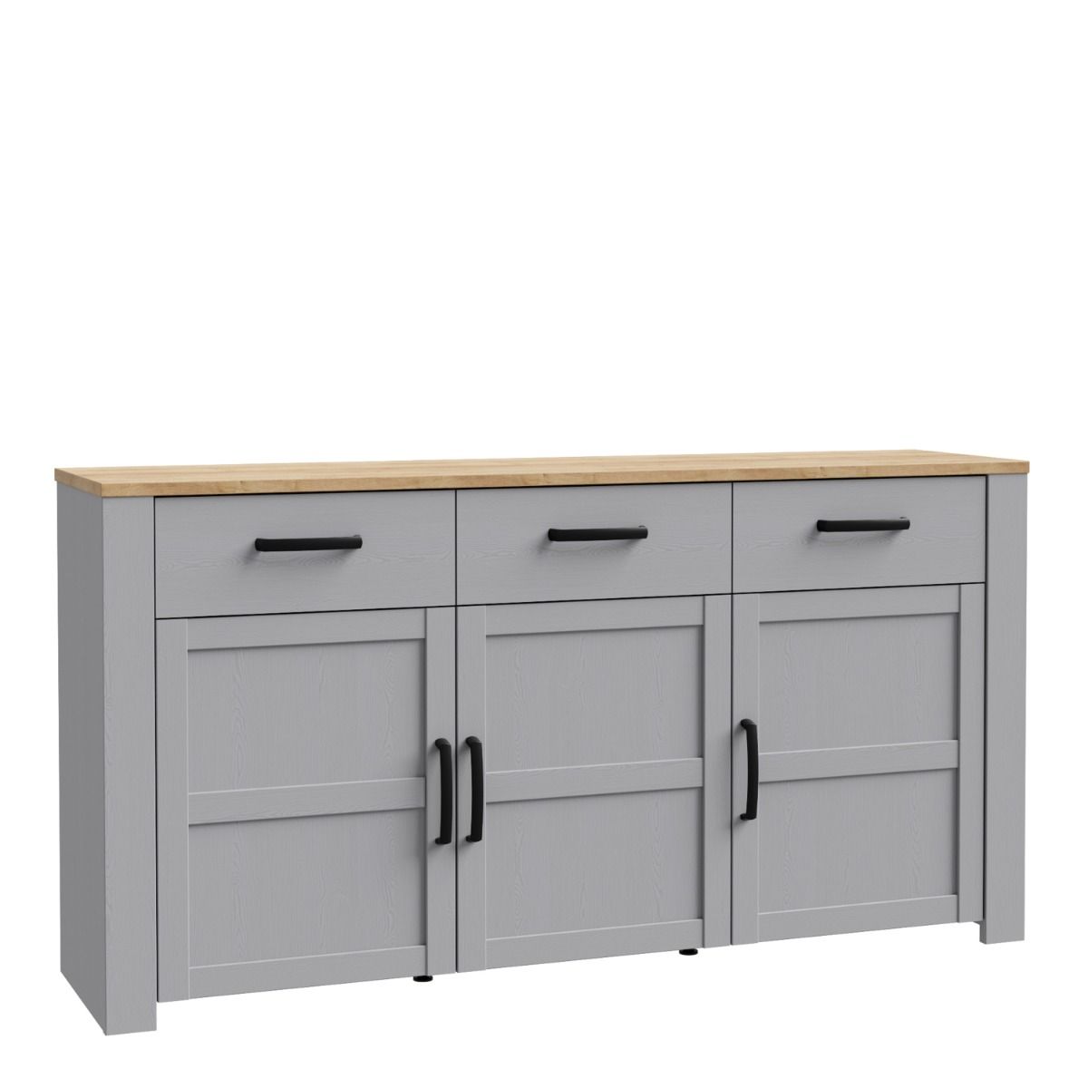 Karen Riviera Oak Top 3 Door Sideboard with 3 Drawers - Grey