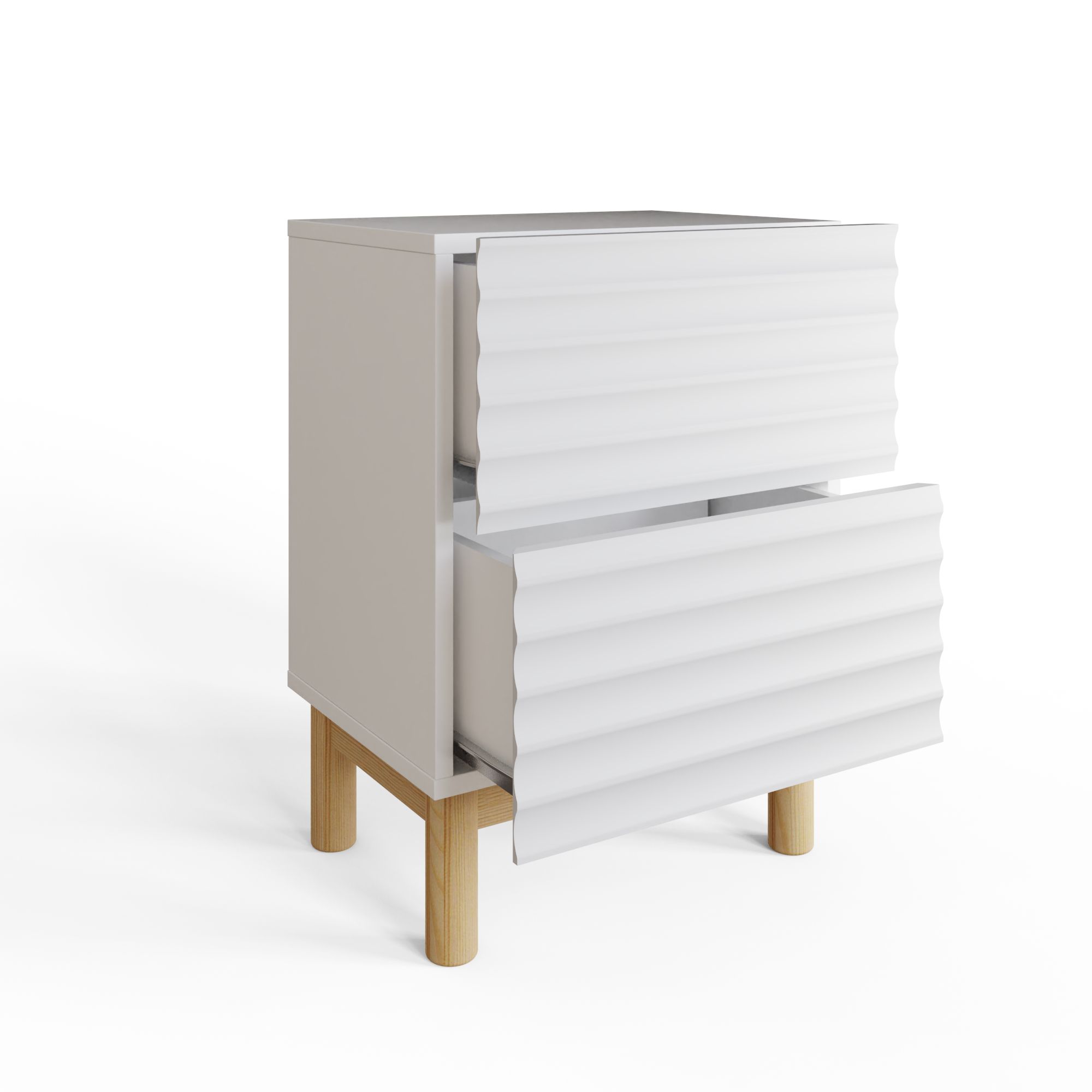 KARVO 2 Drawer Bedside Table with Ribbed Front - White