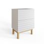 The KARVO Bedside Table blends modern elegance with functional design, featuring a ribbed-textured front, a sleek white finish, and natural wooden legs for a contemporary look. With two spacious drawers, it offers ample storage while maintaining a minimalist, handle-free aesthetic. Perfect for modern, Scandinavian, or minimalist interiors, it’s a stylish yet practical addition to any bedroom.
