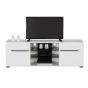 Kaspars Large 2 Doors Tv Cabinet with 2 Glass Shelves - White High Gloss Fronts Matt White Sides And Top