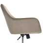 This beautifully designed office chair combines style and comfort with its soft fabric upholstery in a light grey shade that complements any workspace. The generously padded seat and backrest create a cosy, inviting feel that makes long working hours much more pleasant. The adjustable seat height allows for finding the perfect position, while the tilting mechanism enables leaning back and relaxing. The gentle curves and plush texture give this chair a modern, homely look that's just as suited to a home office space.