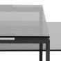 Discover the epitome of chic functionality with this set of two coffee tables, boasting a smoked tempered glass top and a matte black steel sledge base. These pieces exude modern elegance, offering a stylish yet practical addition to any room.