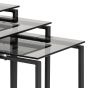 Discover the perfect blend of sophistication and durability with our set of three nesting tables. The smoked tempered glass top and matte black powder-coated steel base offer a contemporary look that complements any decor.