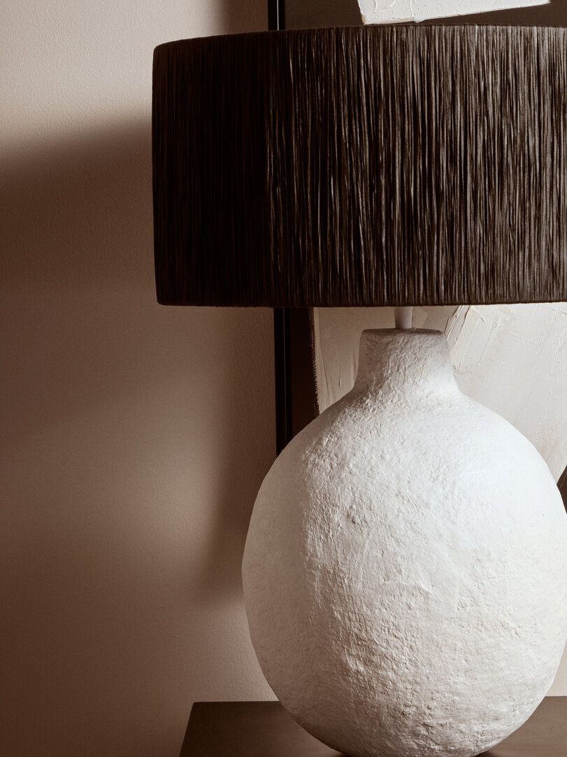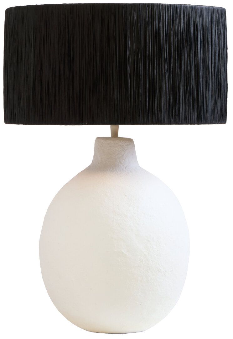 KELMORA Mache Table Lamp With Black Raffia Shade - Black and White
