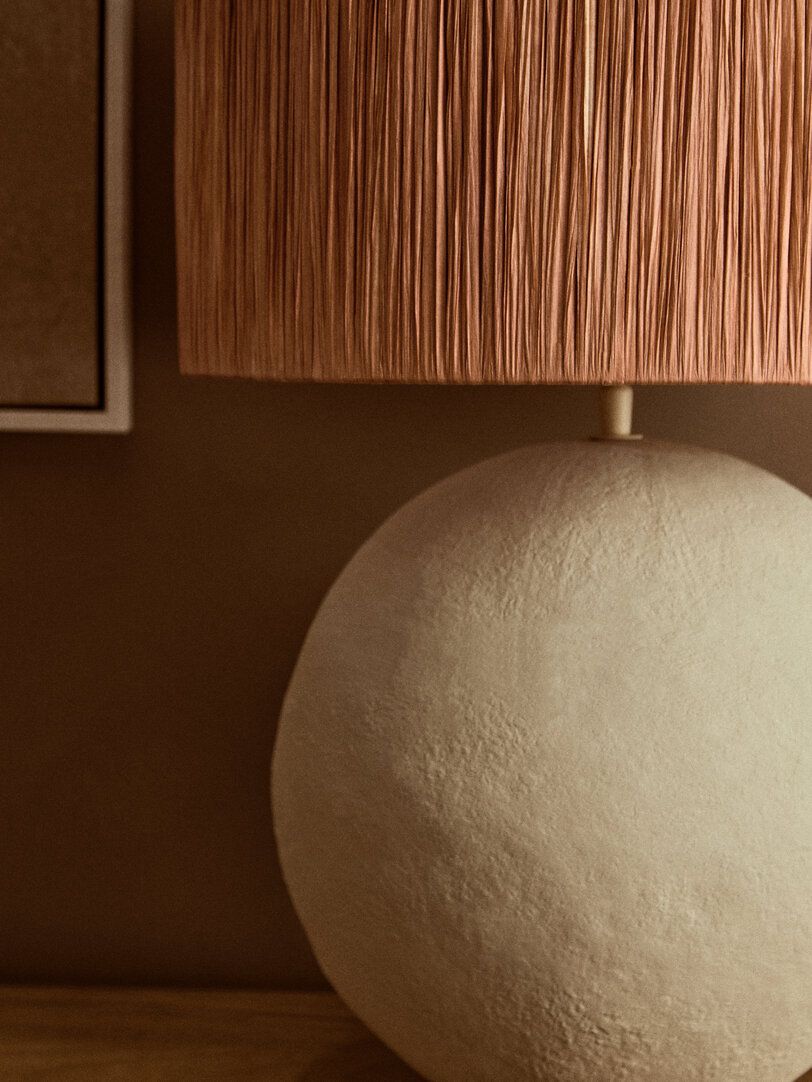 KELMORA Mache Table Lamp With Rust Raffia Shade - Natural and Orange