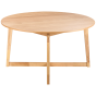 This round dining table brings a natural warmth to your space. Its smooth wood veneer top is spacious, and the sturdy legs, crafted from durable rubberwood, are set at an elegant angle with a cross detail for extra stability and style. Perfect for everyday meals or relaxed gatherings, it combines practicality with a timeless design that seamlessly integrates into any home.