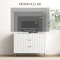 Transform your space with the HOMCOM kitchen sideboard, a versatile charmer that offers lots of storage with three drawers and two roomy cabinets. Adjust the inner shelves across three levels to fit everything from your living room sideboard essentials to kitchen pantry goods. Plus, it stylishly supports up to a 55-inch TV, making it a chic entryway or display cabinet too! Spacious storage solution: This buffet cabinet features three drawers and two double-door cabinets, great for storing kitchen utensils, linens and accessories in your dining area or kitchen. The fluted panel design adds to its classic charm. Adjustable shelving: Equipped with 3-level adjustable inner shelves, this white sideboard conveniently accommodates items of various sizes, enhancing organisation and accessibility. Beyond kitchen: With a long size, the sideboard storage cabinet doubles up as a stylish TV stand in the living room, fusing form and function seamlessly. Wondering how many inches of TV it can hold? Up to 55 inches. Reliable construction: Built with elevated metal legs for easy cleaning with adjustable foot pads and an anti-tipping design for added safety, this storage cupboard combines functionality with reliable construction made from painted MDF.