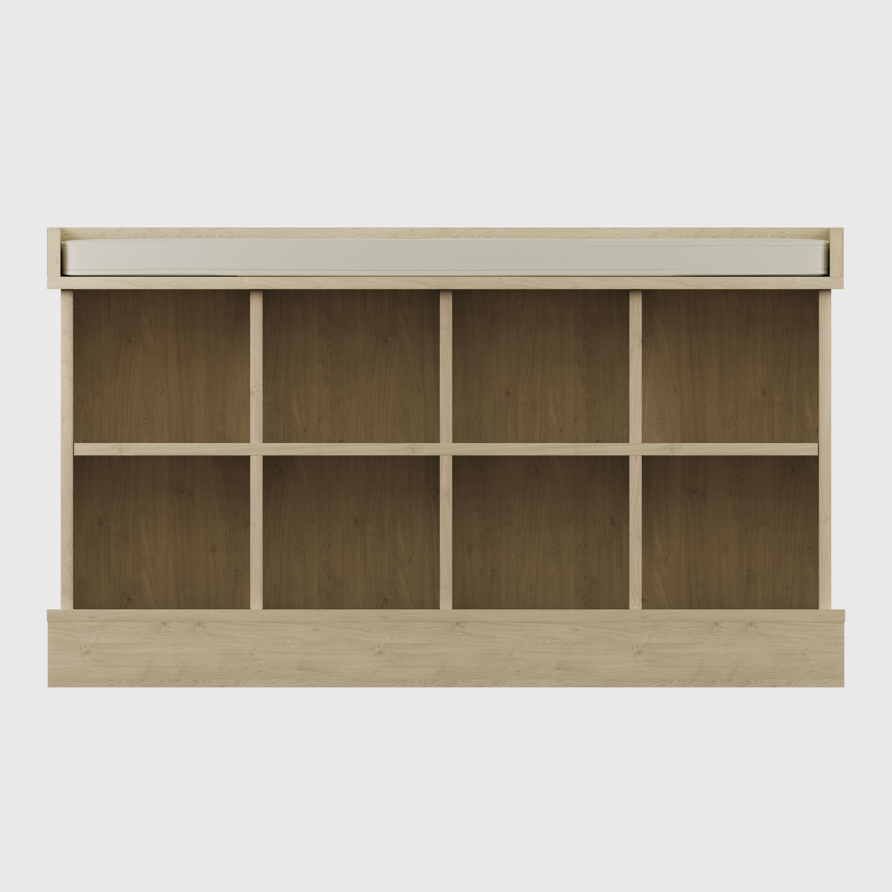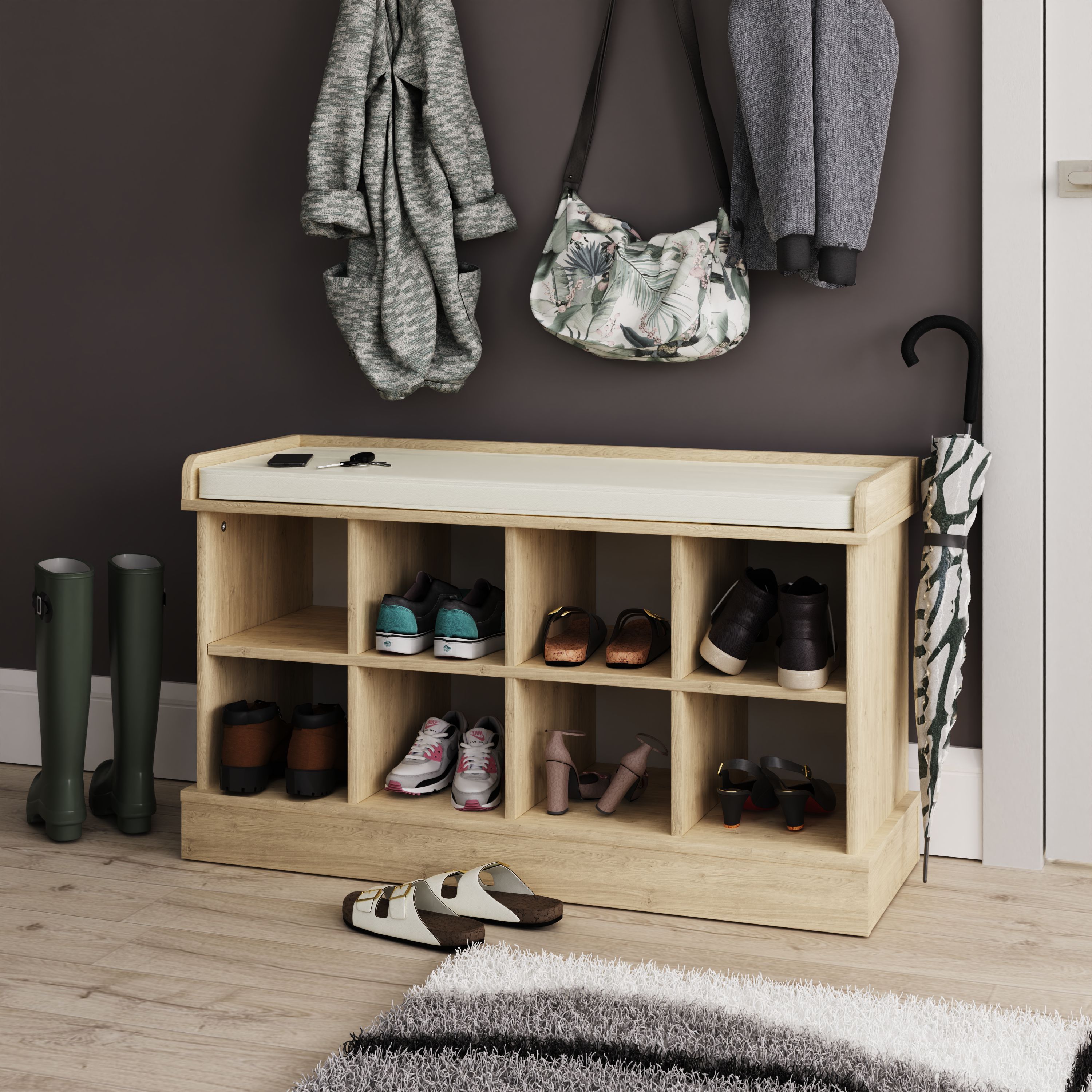Choose from either a shoe storage bench with eight compartments and a padded seat cushion andor a matching wall rack with four storage compartments and hanging hooks. Use separately or together as great hallway storage solutions. Available in White, Grey, Oak or Walnut finishes to match most decor.