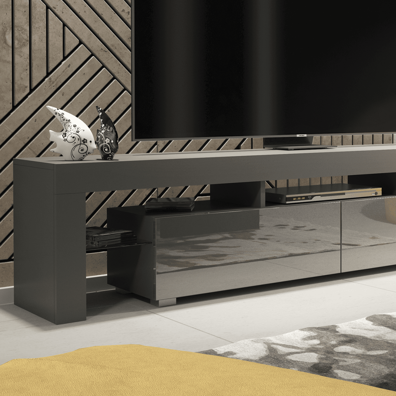 KESTA Modern TV Unit Elegant Storage Cabinet with High Gloss Doors 200cm - Grey