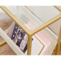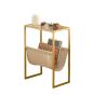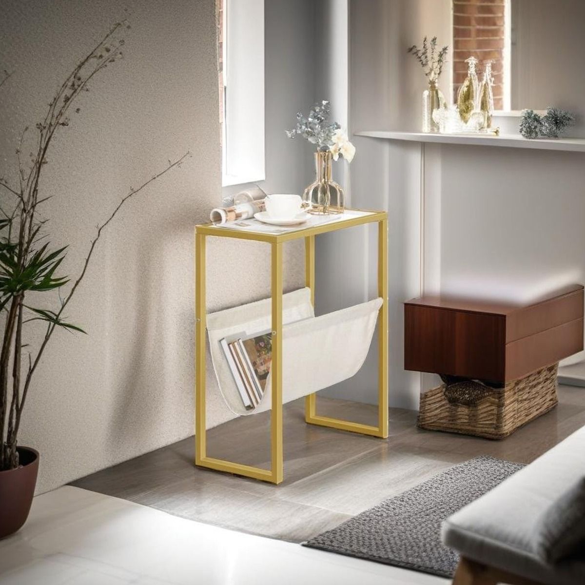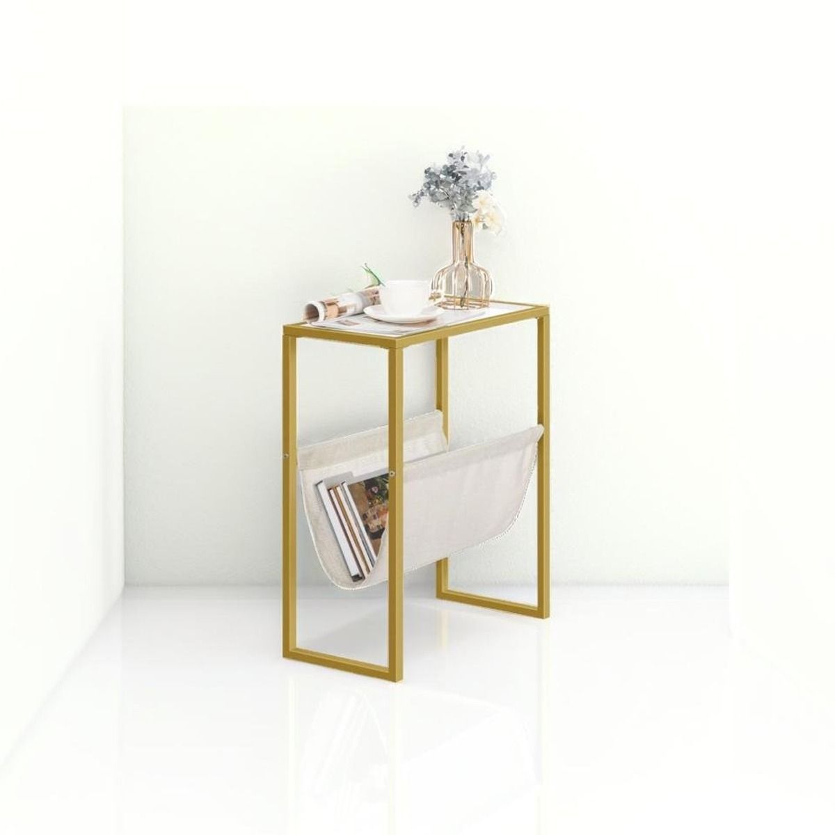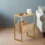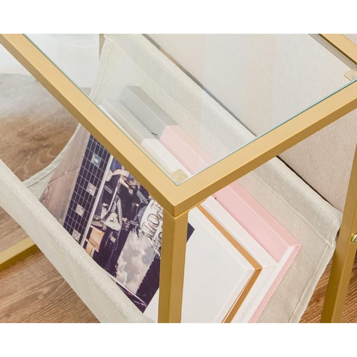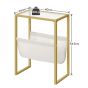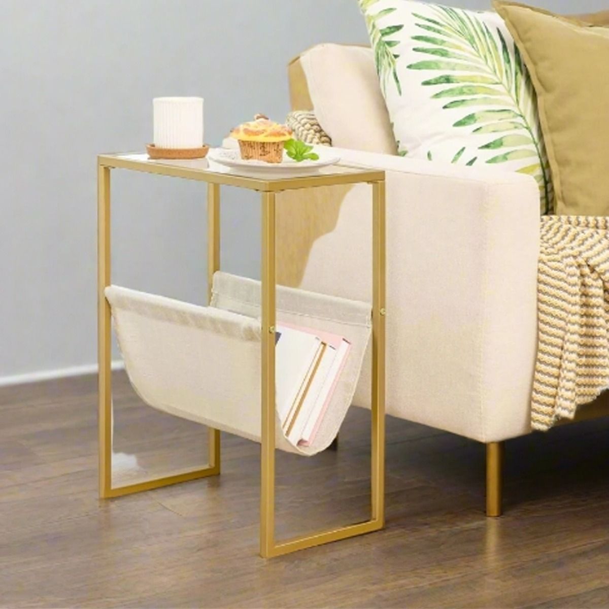 KESTRELLE Side Table Slim Gold Narrow Glass End Table with Fabric Holder - Gold