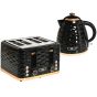 Kettle and Toaster Sets, 1600W 1.7L Rapid Boil Kettle & 4 Slice Toaster w/7 Browning Controls Defrost Reheat Crumb Tray Otter thermostat Black