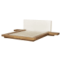KEWI Bedframe with LED Boucle 160 x 200cm EU Kingsize Bed Natural Ash Wood